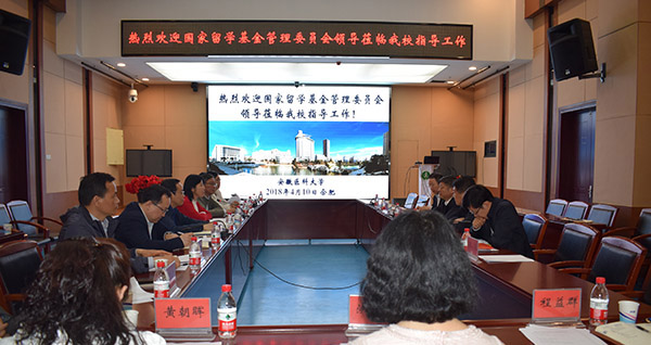 4月10日下午,国家留学基金管理委员会秘书处副秘书长张宁、美大事务部主任董志学、规划发展部副主任袁君一行在省教育厅副厅长解平等的陪同下来我校调研指导工作。校长曹云霞会见张宁一行并进行了座谈交流。