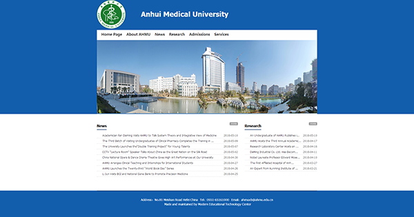 新版官方英文网站设有“About AHMU”(概况)、“News”(新闻)、“Research”(研究)、“Admissions”(招生)、“Services”(服务)等5大板块,下设10多个二级栏目。该网站对旧版栏目进行了有效整合,以强化我校办学理念和特色,力求信息简洁明快。网站内设新闻资讯平台,将及时发布涉外新闻和信息。
