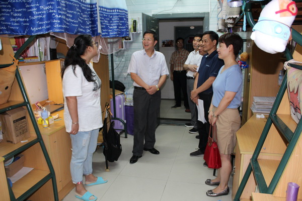 7月25日下午,校党委副书记刘群英率队深入留校学生宿舍进行检查。
