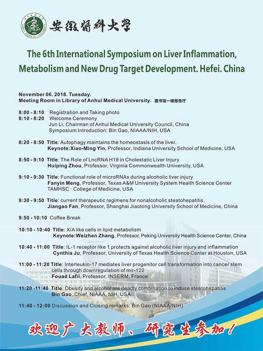 第六届肝脏炎症、代谢和药物新靶点研究国际论坛(2018年11月6日上午,图书馆第一学术报告厅)