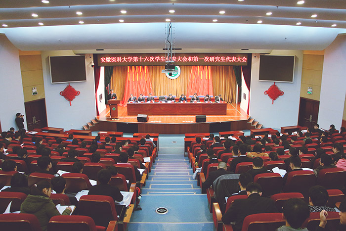 大会在庄严的国歌声中隆重开幕。刘群英代表校党委和行政对大会的召开表示热烈祝。他指出,长期以来,学校坚持以党建带团建,以党建带动思政工作和学生工作,高度重视学生会、研究生会工作,将其定位职能、学研代会的功能作用写入学校《章程》和重要规章制度,在学校重大决策中主动倾听学生们的意见和建议,充分体现并落实了广大学生在学校办学过程中的主体地位。他还对同学们提出五点希望,一要坚定理想信念,成为有大爱大德大情怀的人;二要增长知识见识,成为心无旁骛求知问学的人;三要加强体育锻炼,成为阳光自信体魄强健的人;四要提升审美素养,成为文化底蕴积淀深厚的人;五要弘扬劳动精神,成为崇尚劳动创新创造的人。他勉励大家秉承“好学力行,造就良医”的校训精神,永远跟党走,砥砺奋进新时代,努力为建设高水平医科大学、现代化五大发展美好安徽贡献智慧力量,在奋力推进改革开放、实现中华民族伟大复兴的中国梦的进程中书写无愧于时代的青春之歌。
