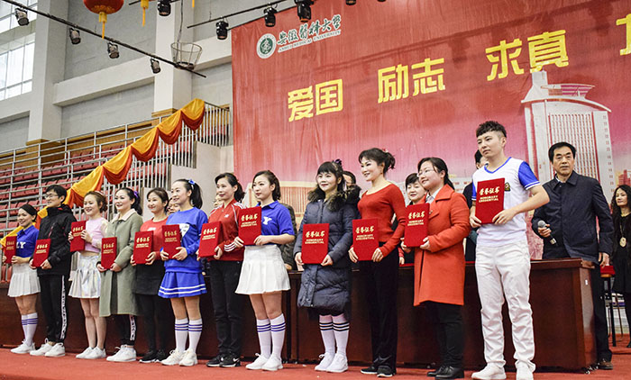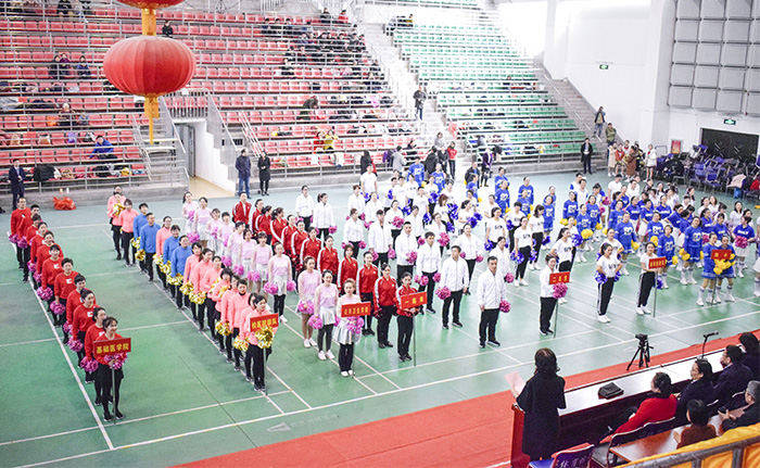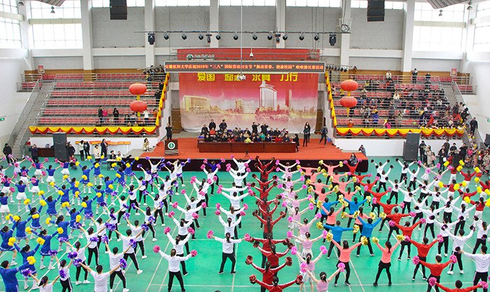 3月8日下午,我校2019年“三八”国际劳动妇女节啦啦操比赛在校体育馆举行。校长曹云霞、校党委副书记刘群英及各部门负责人现场观看比赛,与女教职工共庆节日。