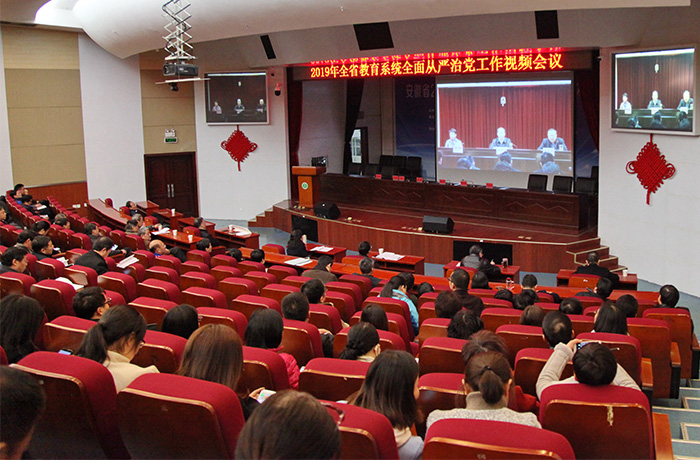 会前,与会人员在我校分会场组织收看2019年全省教育系统全面从严治党工作视频会议。