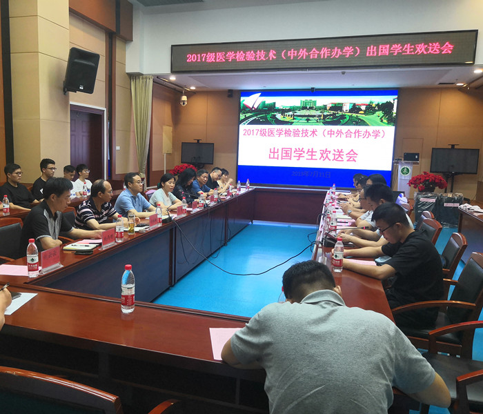 威尚生物技术有限公司和学校有关部门、学院领导、老师、即将出国的同学以及该专业2018级同学代表参加了欢送会。会议由该院学生党总支副书记薛磊主持。(第一临床医学院学生党总支 文/王玉蓉 图/张俊杰)
