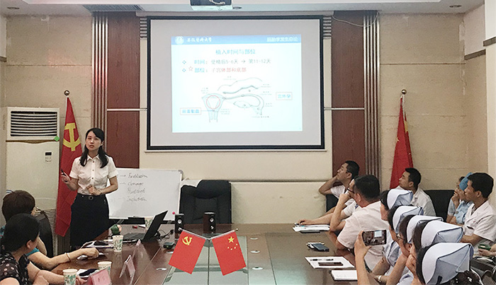 在讲授受精过程中精子顶体反应时,谢芬芬将临床异常精子的科研图片进行了展示,进而说明如果顶体酶异常可导致男性不育,拓宽了课程的深度和广度,给学生埋下了科研和思考的种子。
