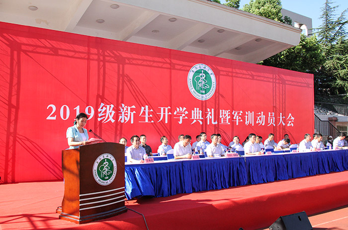 校党委书记顾家山、校长曹云霞、校党委副书记刘群英、校纪委书记常业军、副校长余永强、副校长肖圣龙、副校长吕雄文、第一临床医学院(第一附属医院)院长梁朝朝等出席开学典礼并在主席台前排就坐。开学典礼上,顾家山代表学校向军训团授旗,曹云霞发表讲话,刘群英主持大会,肖圣龙宣布军训团组成人员名单。