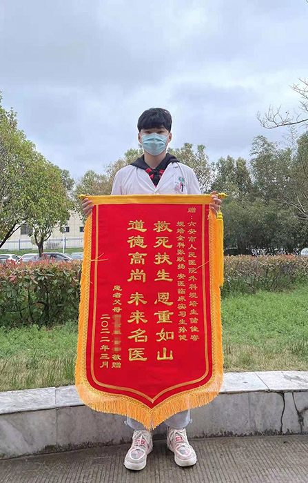 经过一轮紧张按压后,孙健随即让另外一名同学接替进行,自己立刻以百米冲刺的速度跑到最近的急诊科寻求帮助,并与值班医生一起带着AED(自动体外除颤器)赶到现场继续施救。经过抢救,该患者被成功救回,目前正处于康复阶段,患者家属也向孙健送上了锦旗表示感谢。