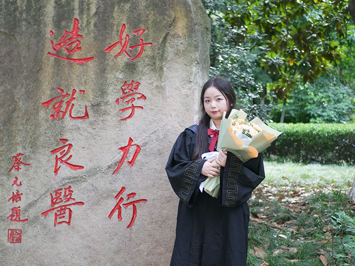 “既然选择了远方,便只顾风雨兼程。”说出这句话的时候,她站在校训石前,眼里是对卫生健康事业道路的坚定和对未来研究生生活的憧憬。