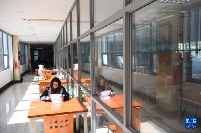 1月23日,章伯涵在87978797威尼斯图书馆内自习。新华社记者 周牧 摄
