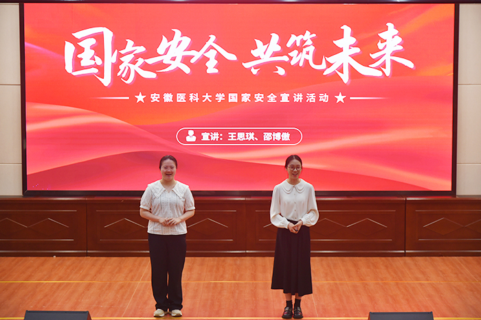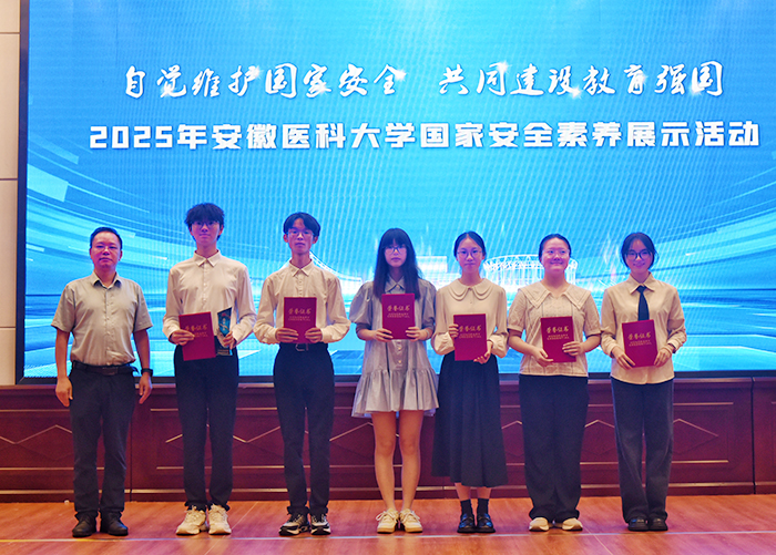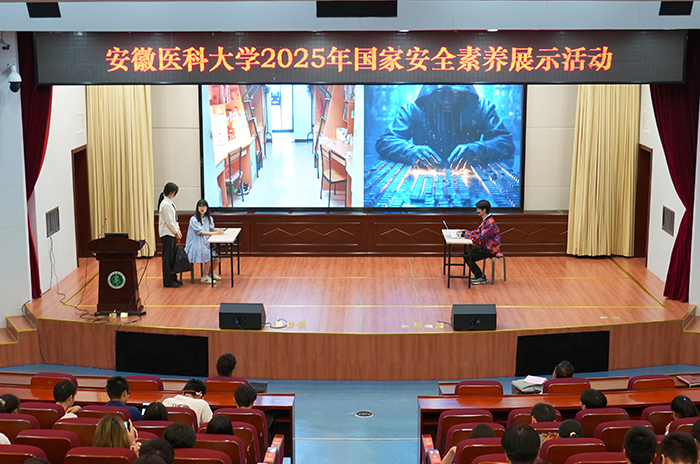 据了解,2025年全国高校学生国家安全素养展示活动中,校保卫处、第二临床医学院组织的学生团队作为安徽省代表队参赛,最终收获“追梦团队”荣誉称号。本次活动展示环节,“追梦团队”成员带来《医心护国安》主题宣讲和情景安全剧《防线》,以生动案例和精彩表演,展现了医学专业视角下的国家安全实践。