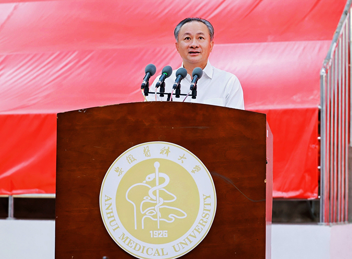 今天,你们将从安医大启程。无论你们未来走向何方,身处何种岗位,希望你们都能将这五个词内化于心、外化于行,以“厚德”修身,以“担当”立业,以“创新”求索,以“开放”纳新,最终归于“为民”之本,在守护生命健康的道路上,书写无愧于时代、无愧于人民的华彩篇章!