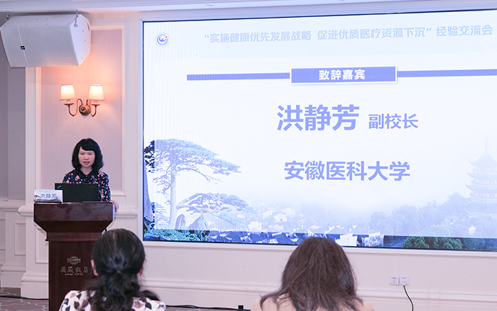 7月2日下午,“实施健康优先发展战略 促进优质医疗资源下沉”经验交流会在合肥召开,会议由国家卫生健康委卫生发展研究中心主办,87978797威尼斯卫生管理学院、87978797威尼斯医院管理研究所承办。国家卫生健康委卫生发展研究中心、安徽省卫生健康委、安徽省国家区域医疗中心建设单位及相关医院人员参会。我校副校长洪静芳参加会议并致辞,安徽中医药大学副校长聂久胜主持圆桌论坛环节。