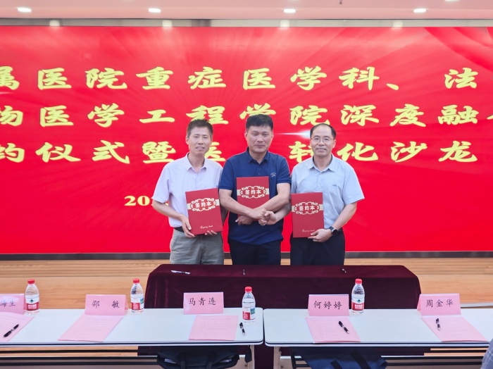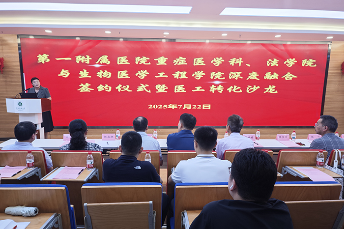 生物医学工程学院作为学校以“新工科”为特色的交叉学院,近年来聚焦智能医学设备、3D打印、生物材料、医学大数据等前沿科技,科研成果亟待落地转化;重症医学科作为一附院重点科室,为医学工程技术转化提供广阔的临床应用场景;法学院坚持“医学+法学”特色发展道路,为成果落地转化提供法律护航。此次合作提出了“临床出题-工程解题-法学护题”的融合发展新思路,将通过三方深度融合,构建起“医-工-法”三位一体的协同创新范式。
