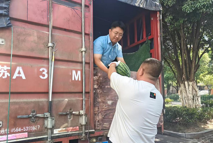 瓜果丰收的时节,本该是瓜农们喜笑颜开的时候,但霍邱县黄泊渡村的瓜农们却遇到了烦心事。了解到农户的诉求后,黄泊渡村党支部第一书记、我校驻村工作队队长王曦第一时间深入调研,探索出“城区地推+工会采购+企业团购+直播推广”的多元化销售模式,让黄泊渡村的好瓜“走出去”,以实际行动纾解瓜农滞销之困,助力乡村振兴。