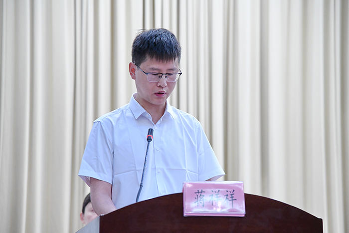 青年后备人才蒋祥祥、黄以超、阚晨作为代表发言,表达了对学校人才支持政策的感谢,表示将珍惜机会、进一步努力,以国家级人才为标杆,争取成长成才。他们还结合自身实际和学科方向,分别交流分享了自己在科学研究探索上的成长历程,一致认为要主动适应新环境,跳出舒适区,大胆尝试、融入,坚持深耕、创新,找准定位,不断调高目标上限,时刻以 “归零” 的心态,在积累中求索,在适应中创新,在创造中突破,持续拼搏、永葆进取动力。